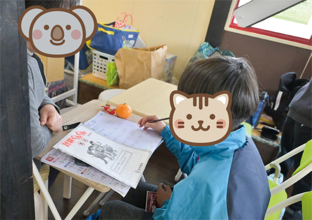 宿題をしたり、工作や自由遊びを楽しんだり、友達とおしゃべりしたりそれぞれが思い思いの時間を過ごしています✏️🎨🧸💬